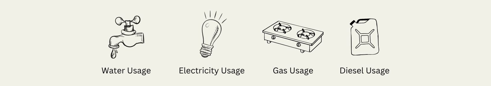 Calculate the amount of water, electricity, and gas consumed per event (hours or days) based on an average.