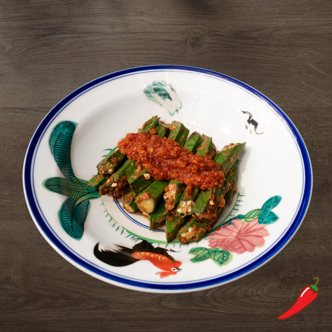 Steamed Okra with Chili Garlic Dried Shrimp Sauce