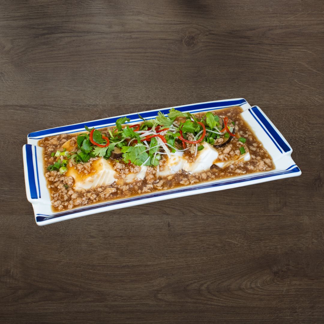 Steamed Tofu, Minced Chicken with Low Sodium Oyster Sauce